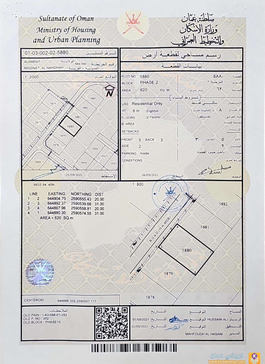 نوع الاستخدام : سكني - المكان: مسقط - - مدينة النهضة -