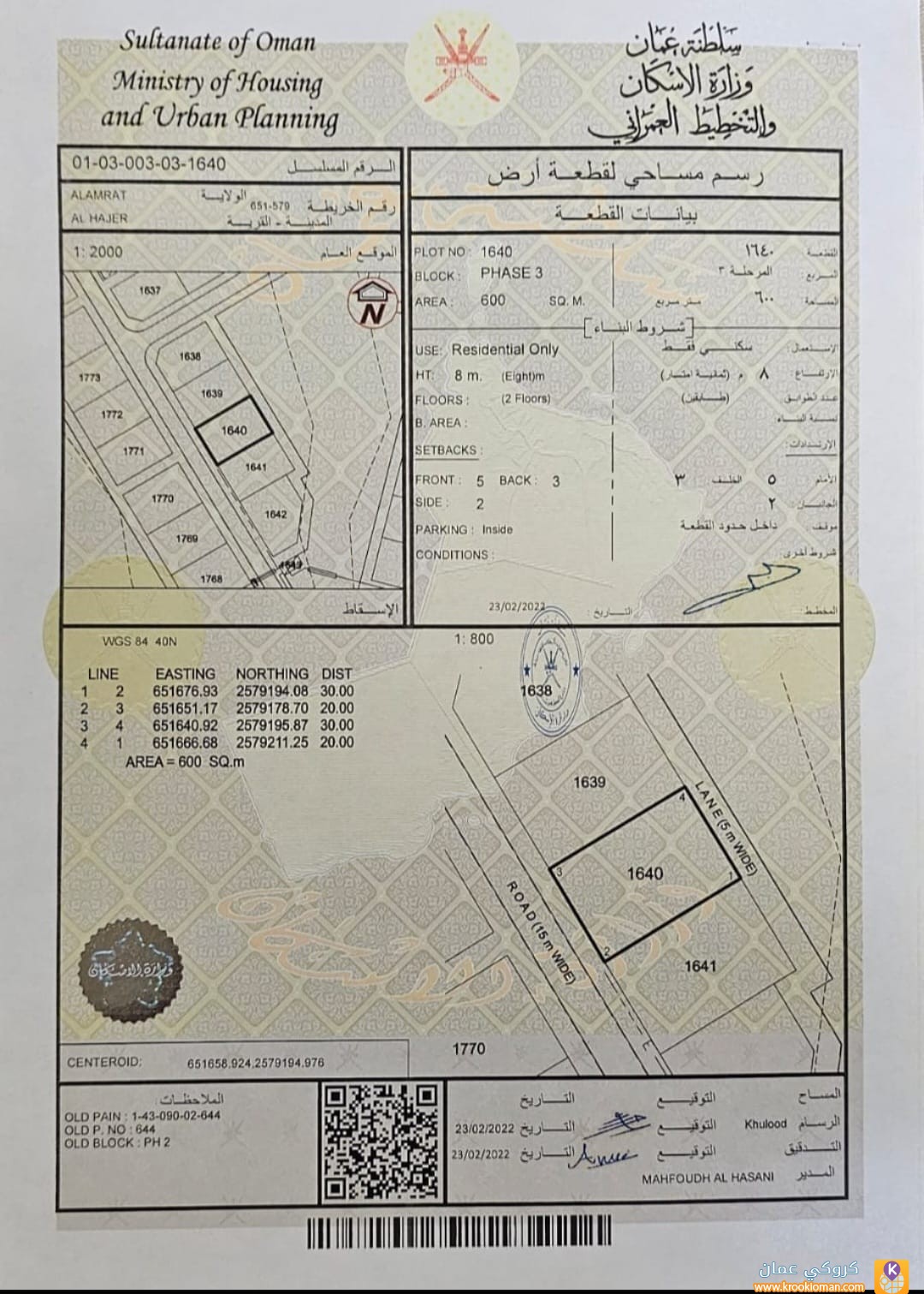 نوع الاستخدام : سكني - المكان: مسقط - - الحاجر -