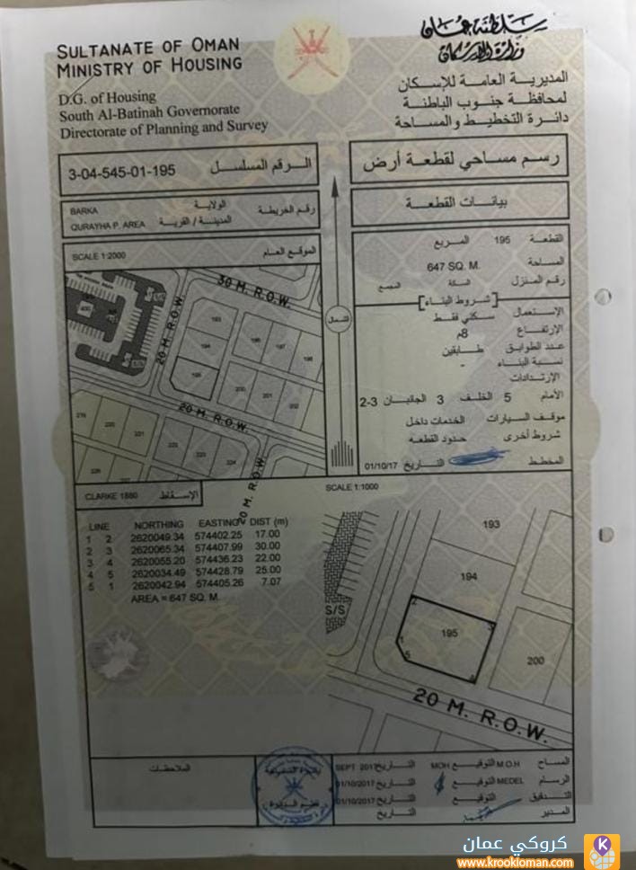 للبيع ارض سكنيه في بركاء القريحات الجديده