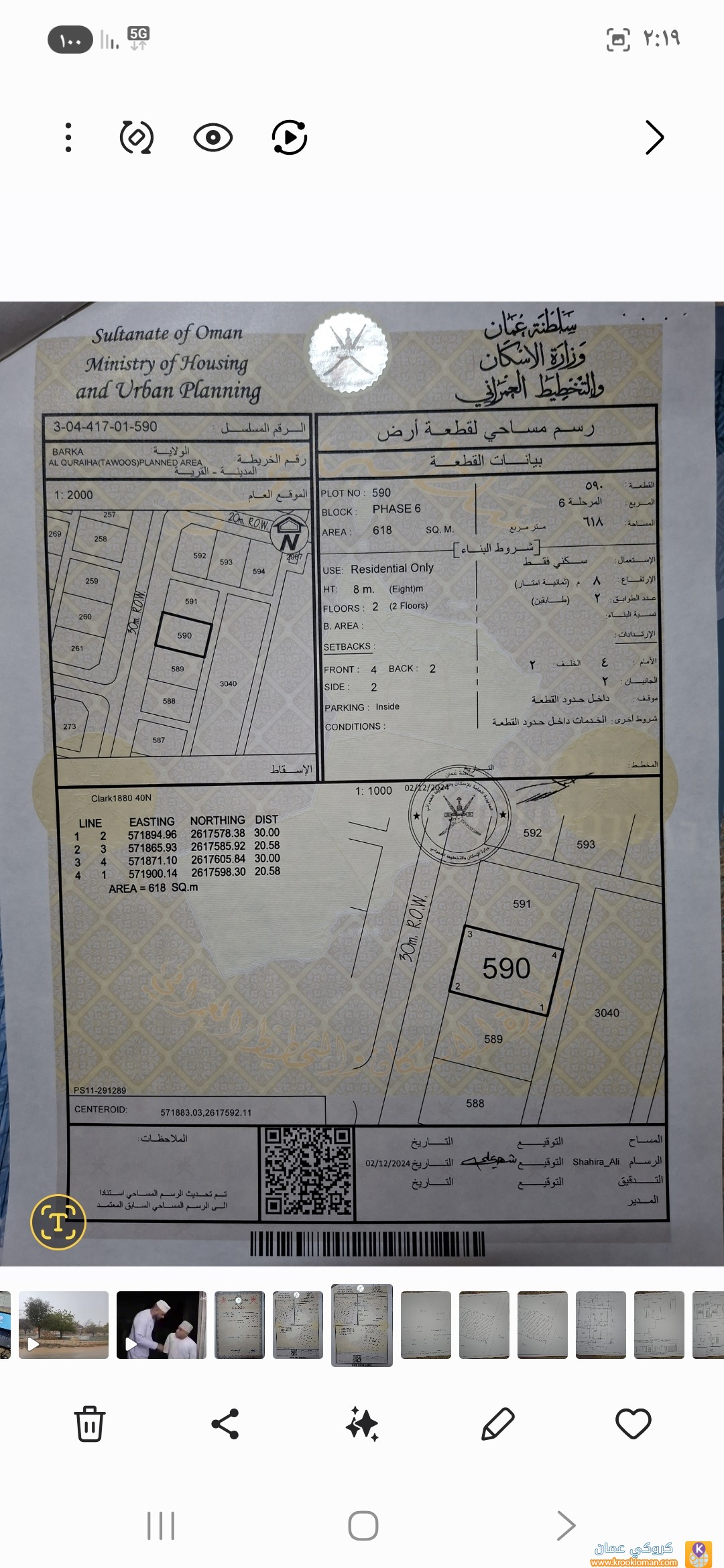المربع: ALQURAIHA(TAWOOS)PLANDARE - المساحة: 618