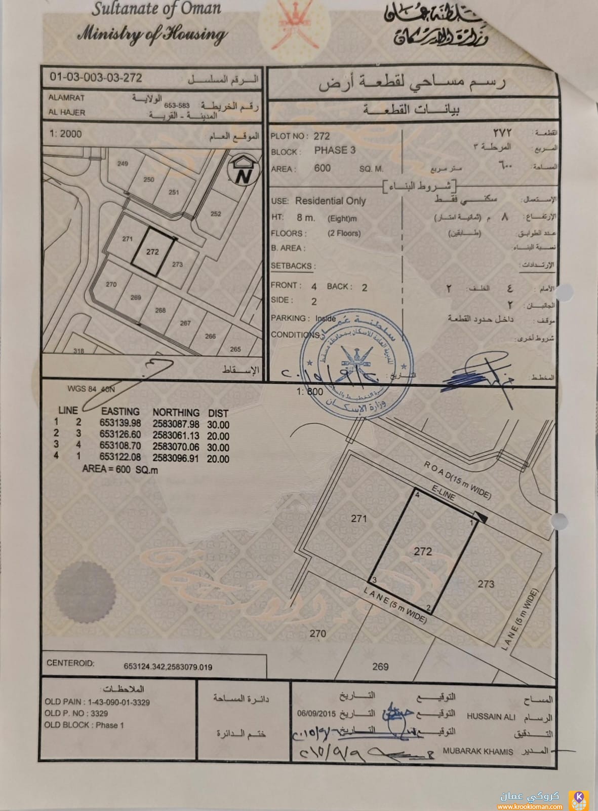 رقم القطعة (272) .
