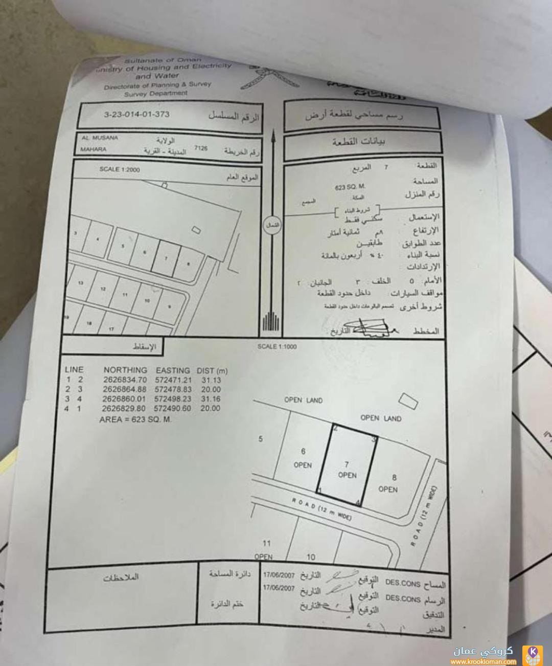 _ مساحة الأرض :( 623م²)