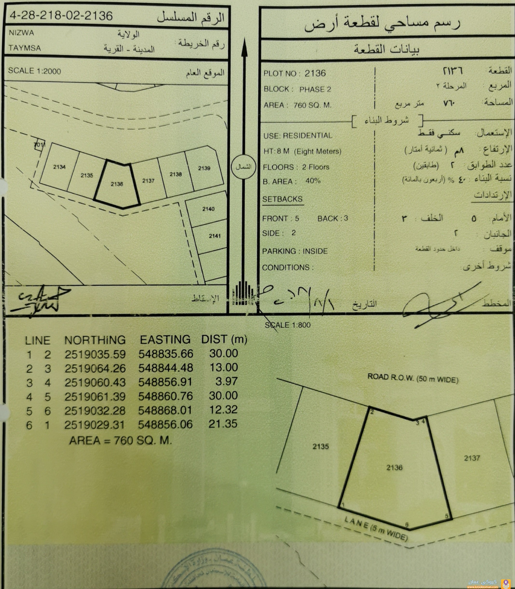 المربع: 2 - المساحة: 760